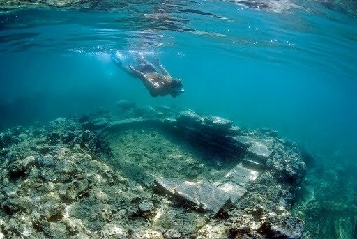 Τα νερά είναι τόσο καθαρά, που θα μπορείτε να δείτε -μεταξύ άλλων- θεμέλια σπιτιών, αγγεία, είδη δομικής στήριξης και τμήματα δαπέδου.