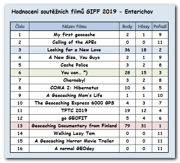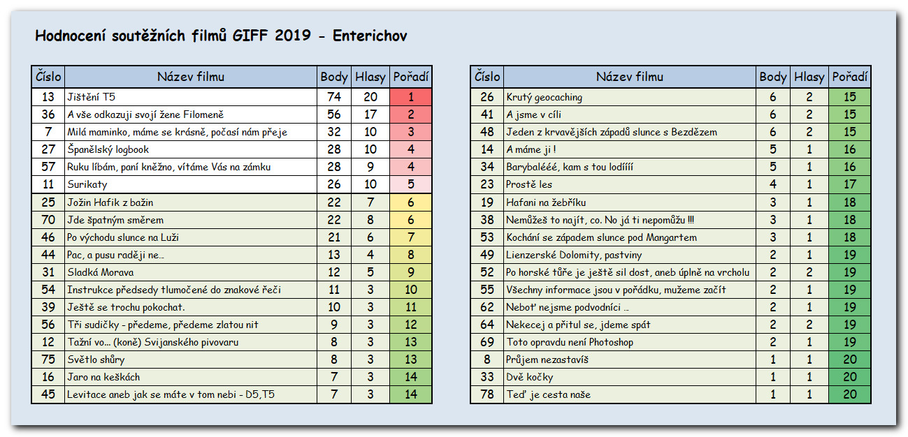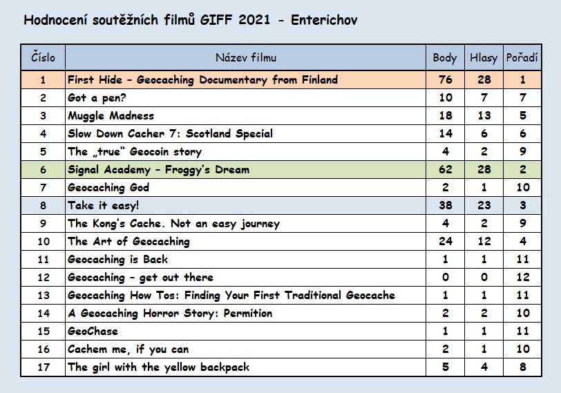 Hlasování a vyhodnocení GIFF - Enterichov: