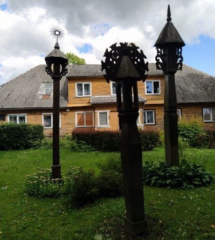 [EN] Roof pillars for M. K. Čiurlionis, built next to the house where in 1909 he lived with his wife Sofia. The roof pillars were built in 1974. Only two master are known who made them, first Liudas Ruginis, other Vaslovas Banevičius, and the third one has only initials A.E.