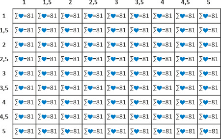 Je nutné zalogovat všechny kombinace obtížnosti a terénu, současně je třeba dodržet podmínku, že součet favoritních bodů pro každou kombinaci D/T musí být alespoň 81.