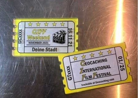 Offizielles Token* zum Event. Die Token sind aus Plexiglas gefertigt und nach Art einer Kinokarte gestaltet. Sie zeigen Ort, Datum und GC-Code des Events sowie die individuelle Trackingnummer. Preis 4,- € pro Stück.