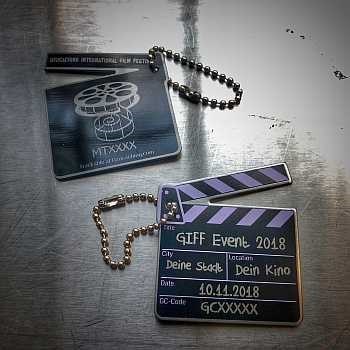 Weiterhin bieten wir diese True Metal Tags aus 1,5 mm Edelstahl, Motiv Filmrolle, sowie Filmklappe, zum GIFF Event an. Preis: 6,00 € pro Stück.