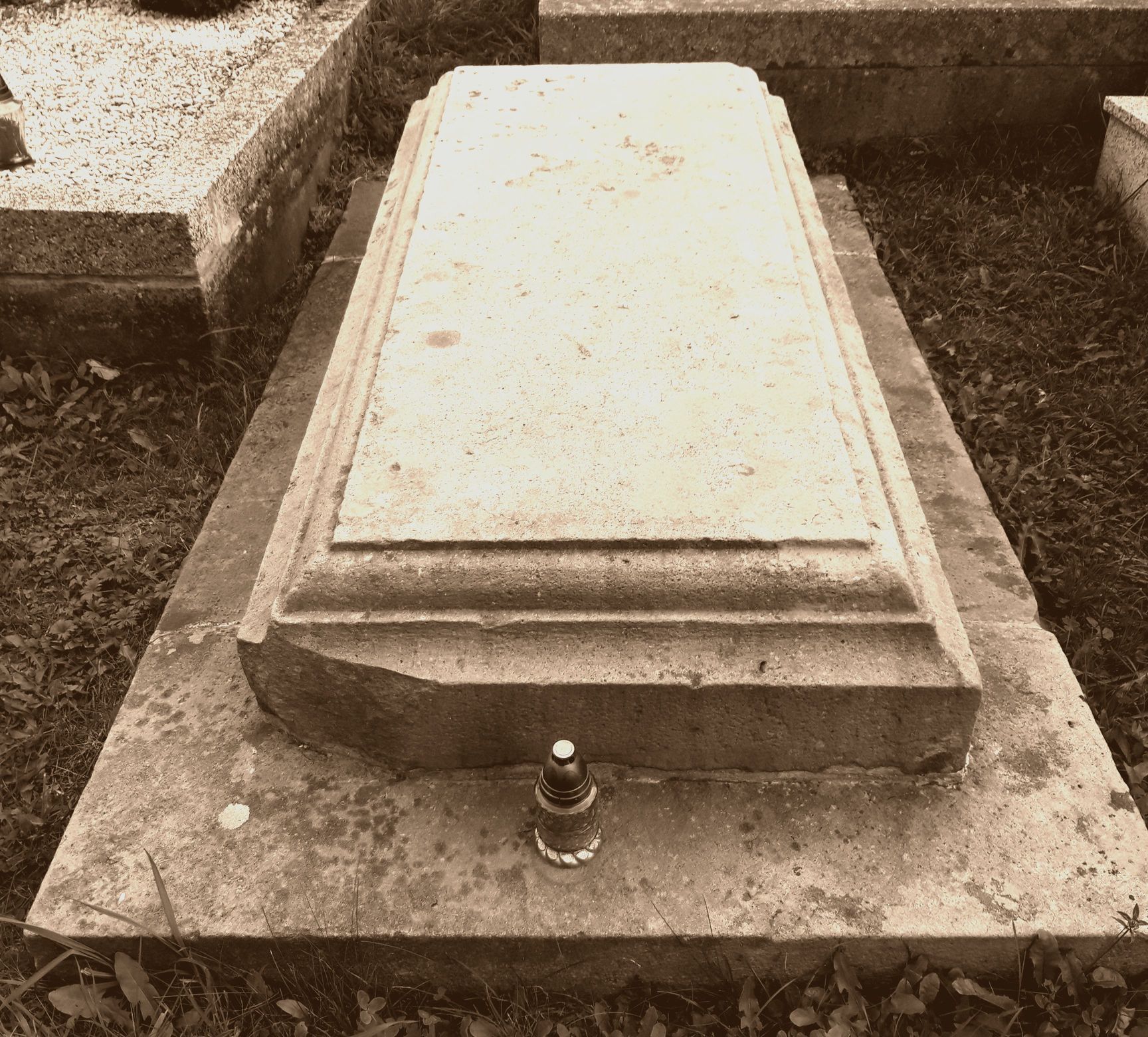 A pak se podívejte na horní stranu náhrobku přímo nad jménem a odpovězte, co tam vidíte:
