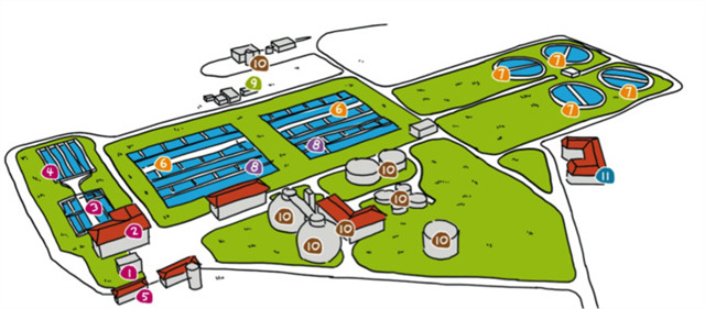 Das vollbiologische Klärwerk existiert an diesem Standort seit 1999 und kostete stolze 77Mio €