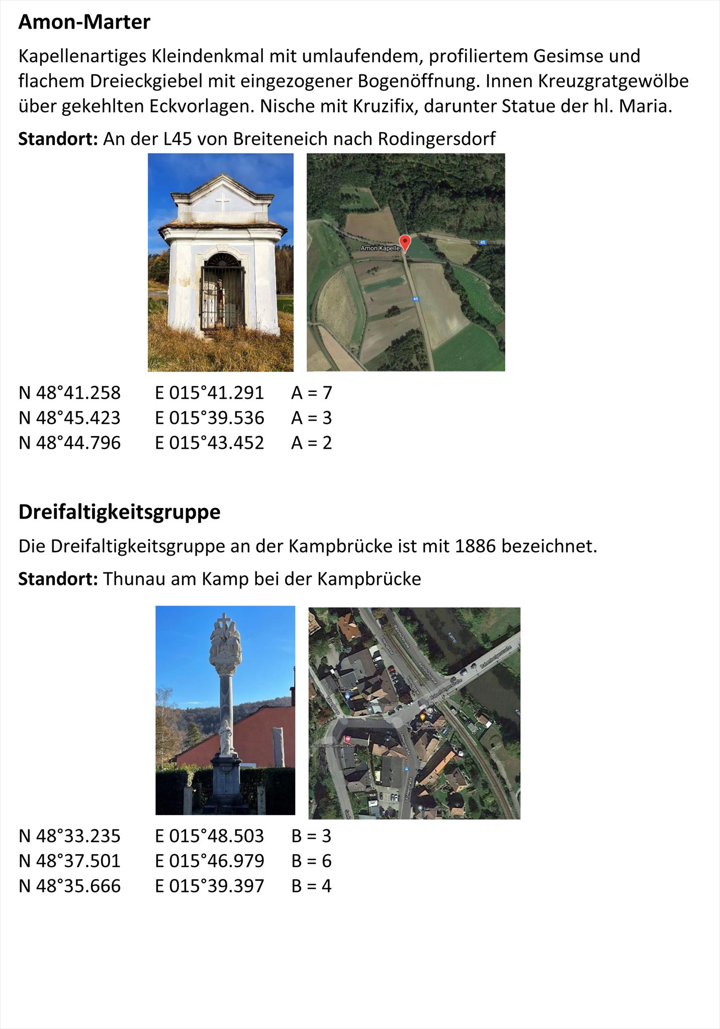 Finde den richtigen Standort der unten angeführten Kleindenkmäler und du hast die passenden Variablen.