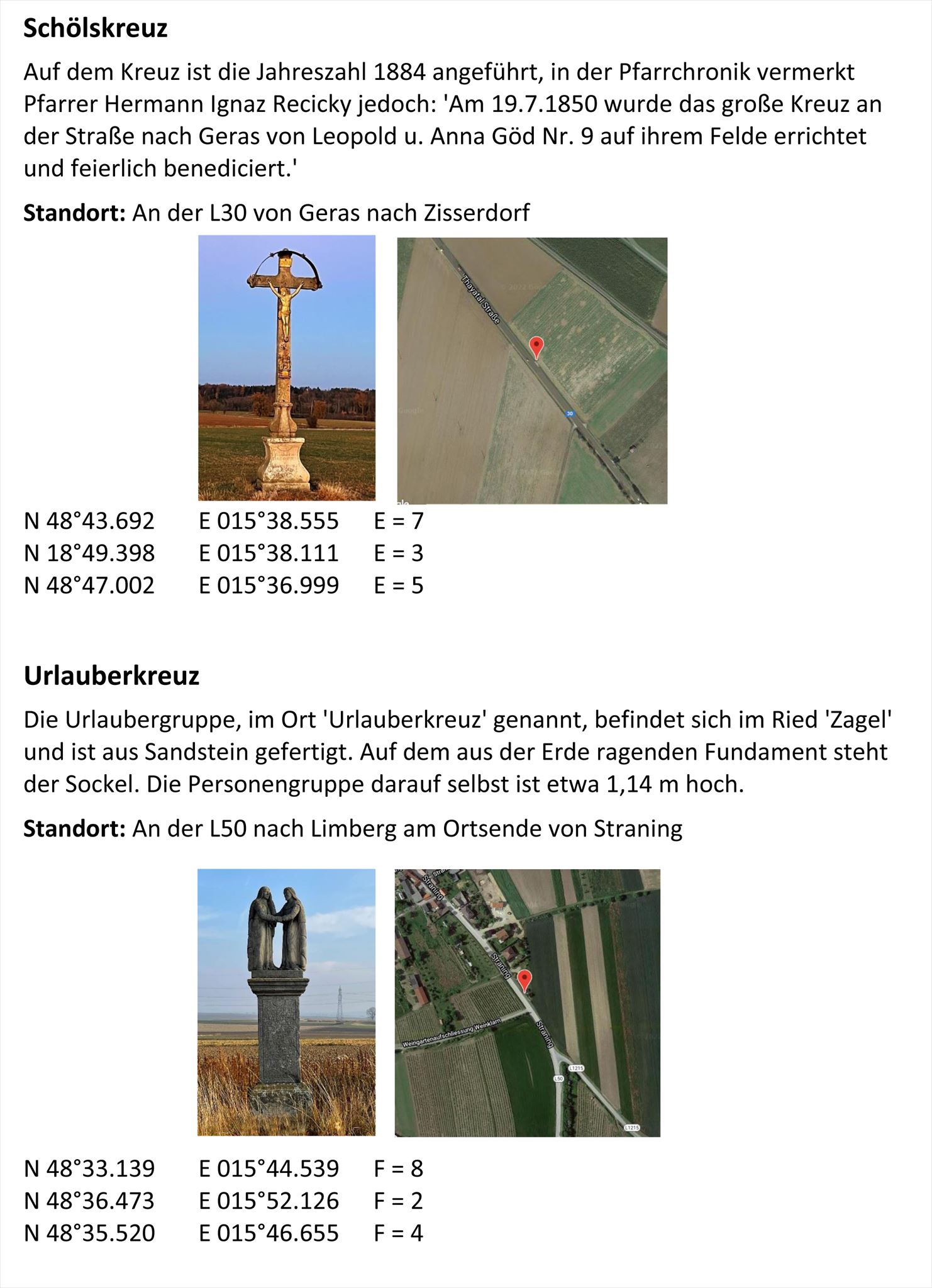 Finde den richtigen Standort der unten angeführten Kleindenkmäler und du hast die passenden Variablen.