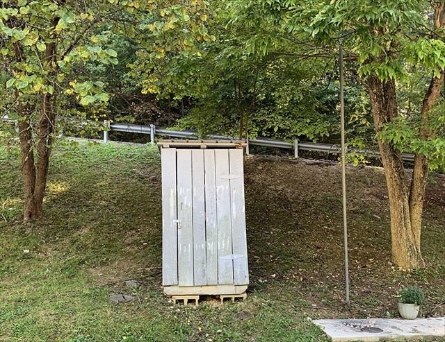 There's no quarter moon on the door, but you will have no trouble recognizing this one-holer that was once well used by those passing through this rural area of eastern Pulaski County.