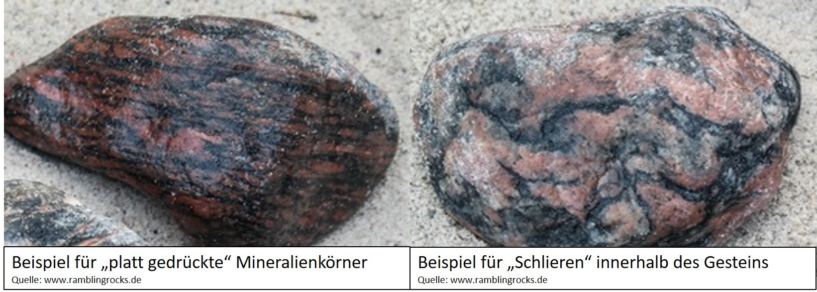 Kann man platt gedrückte Mineralienkörner oder Schlieren im Gestein erkennen?