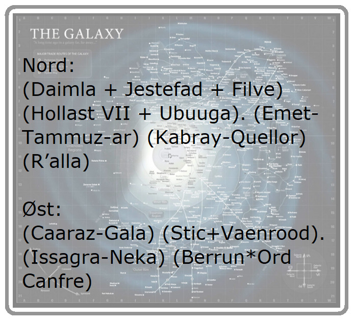 Star Wars-filmene foregår i ’en fjern, fjern galakse for meget længe siden’ og var en af billioner af galakser i universet. Galaksen var enorm med over 400 mia. stjerner og over 3,2 mia. beboelige systemer, der kredsede om et supermassivt sort hul i hjertet af galaksen.