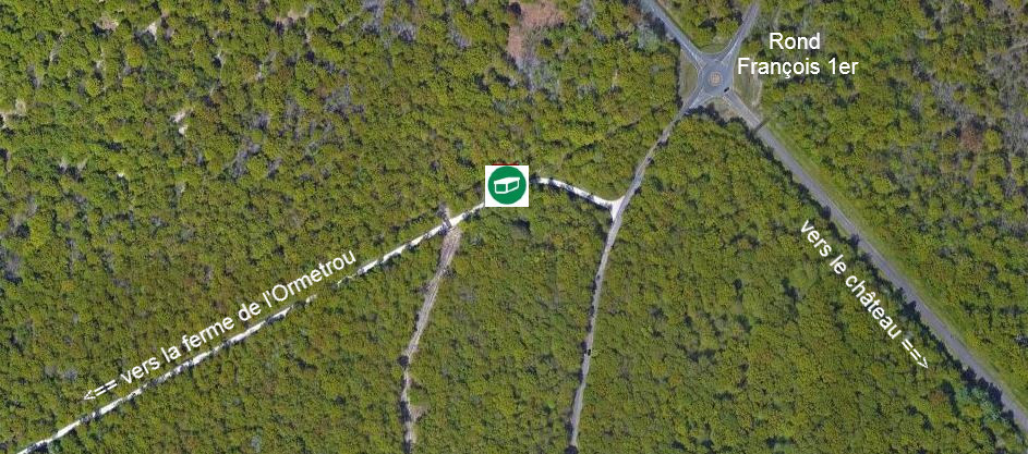 Cette cache se situe en bordure de la route de l'Ormetrou. Cette route, qui est en réalité plus un chemin qu'une route, rejoint la ferme au rond François 1er.