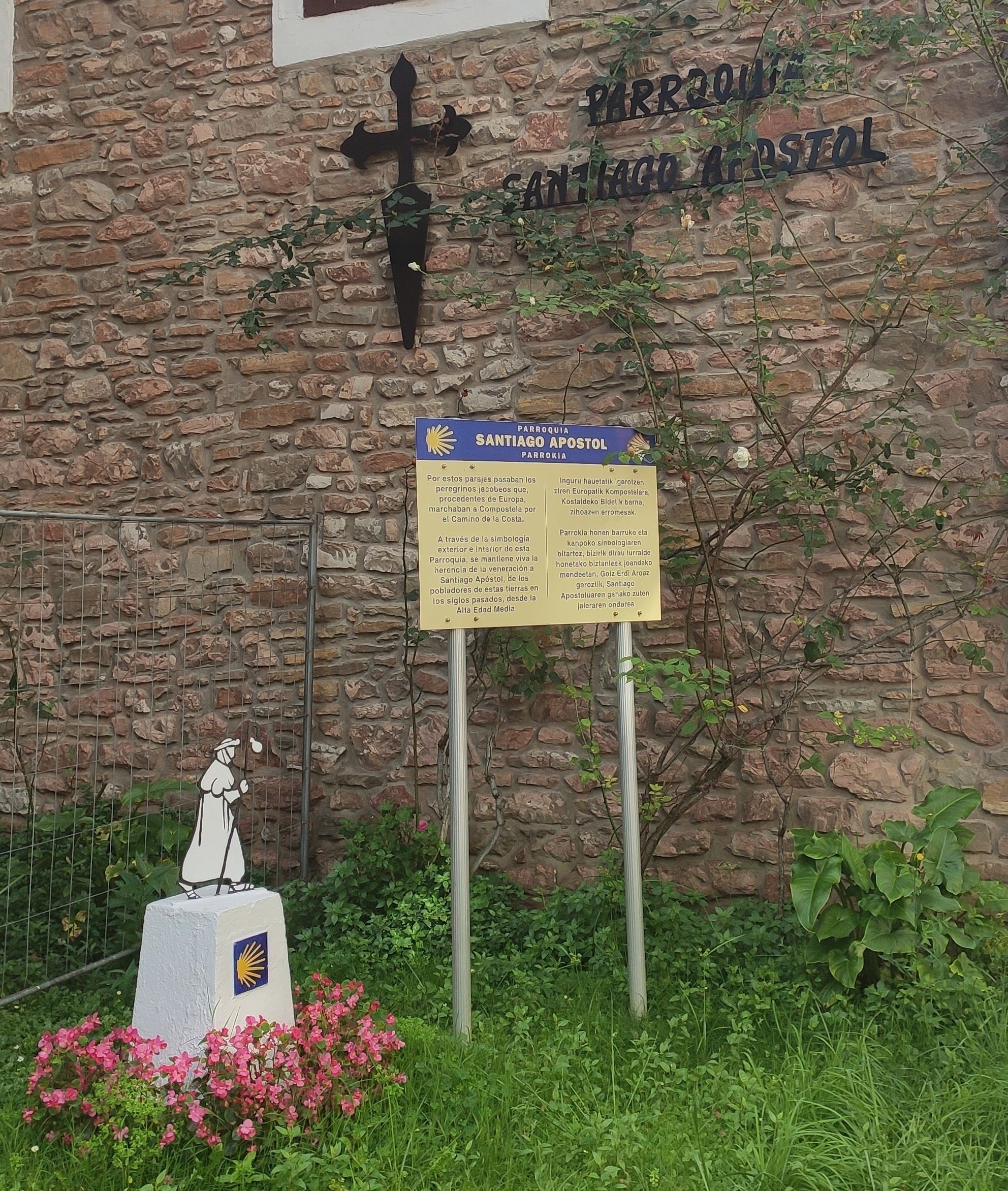 En las profundidades del donostiarra barrio de Amara Viejo (Amara Zaharra), engullida casi por los nuevos perfiles urbanísticos, y amenazada desde hace décadas por una espada demoledora de Damocles que tiene puestos sus ojos en las viejas casas que se hicieron para las familias de la policía, allí se encuentra, como la irreductible aldea de los Galos Asterix y Obelix, la pequeña comunidad de la parroquia de Santiago Apóstol, una parroquia que conserva el sabor de antaño con su párroco y pastor desde hace 60 años. Tras su modesta apariencia, este coqueto templo esconde varias historias que hermanan nuestra ciudad con el Camino. El edificio fue construido a finales del siglo XIX por el Ayuntamiento para acoger servicios municipales, pero no fue hasta 1961 cuando se convirtió en la iglesita que podemos apreciar en la actualidad.