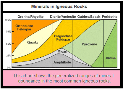 QUESTION 3. Look closely at an unpolished section of the Texas Granite with clear grains. Using the Minerals in Igneous Rocks chart, would you say the range of Orthoclase Feldspar is:
