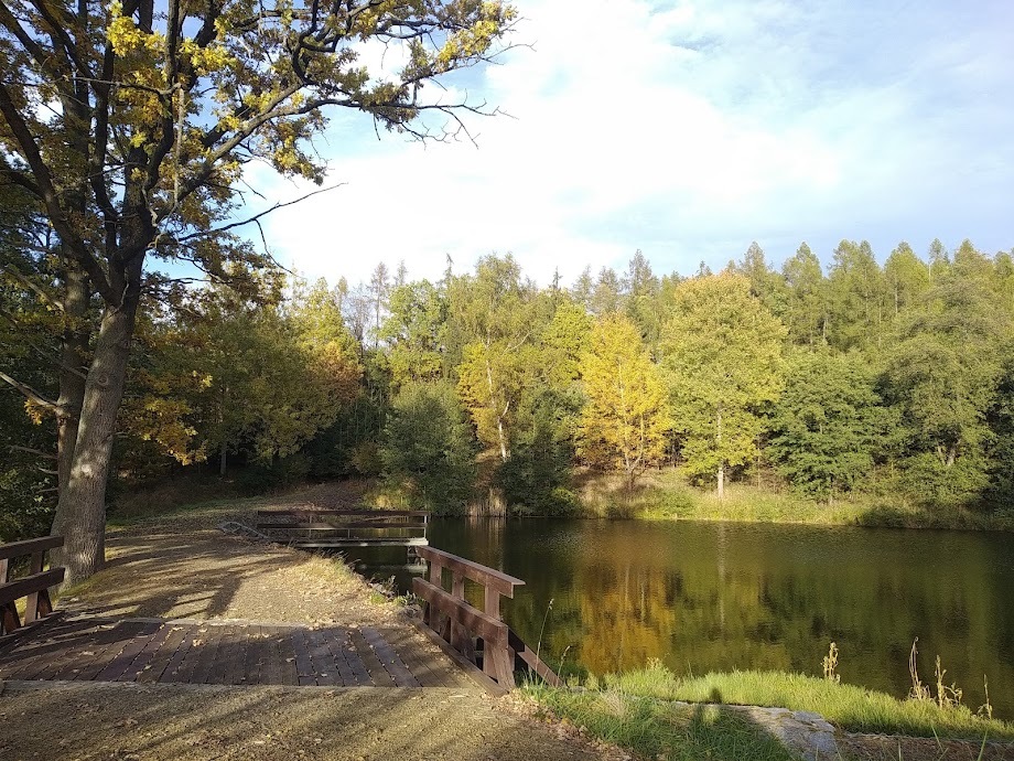 Nejvhodnější místo k parkování uvádí waypoint PARKING. Parkujte prosím tak, abyste nebránili vjezdu na asfaltovou silničku k hájovně nad jezírky. Tato silnička už je pro běžný provoz uzavřena a je osazena zákazem vjezdu motorových vozidel. Dál je tedy potřeba jít pěsky, popř. jet na kole či koloběžce. Další waypoint ukazuje odbočku vlevo ke komplexu rybníčků. Určitě tuto odbočku neminete, to už jste rybníčkům doslova na dohled. No a když se postavíte na můstek vedoucí přes bezpečnostní přeliv nádrže Raška I, budete mít keš přímo pod západním rohem mostku... Keš je lovitelná prakticky kdykoli, tentokrát pod mostek netřeba.