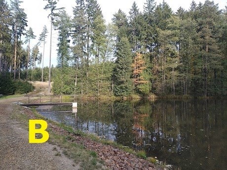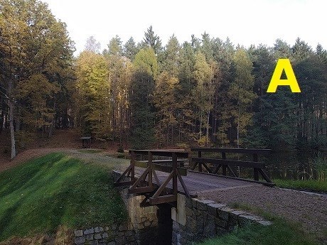 Níže vidíte celkem 6 fotografií, některé jsou popsané písmenem, jiné číslem. Vždy dvě fotografie zachycují stejný rybníček. A Vaším úkolem je spárovat právě ty dvě - fotografii s písmenem a fotografii s číslem od stejného rybníčku, čímž vlastně získáte bonusová čísla, která dosadíte do vzorce. A finálové souřadnice této bonusové keše jsou na světě. Cestu vřele doporučuji volit levobřežní.