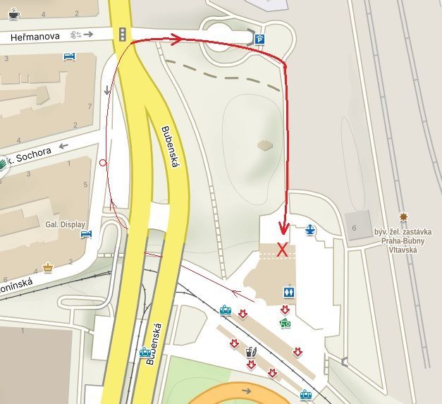 Surroundings of the Vltavská metro station are not quite a beautiful place. Once picturesque center of the city quarter Bubny succumbed to a transfer terminal, cut off from the surrounding town by tons of concrete crossroads.