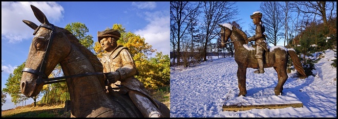 Socha jezdce na koni pochází z dílny nymburského sochaře Michala Járy. Tento dubový skvost má evokovat baladu Karla Jaromíra Erbena Zlatý kolovrat a verše: jede, jede z lesa pán.