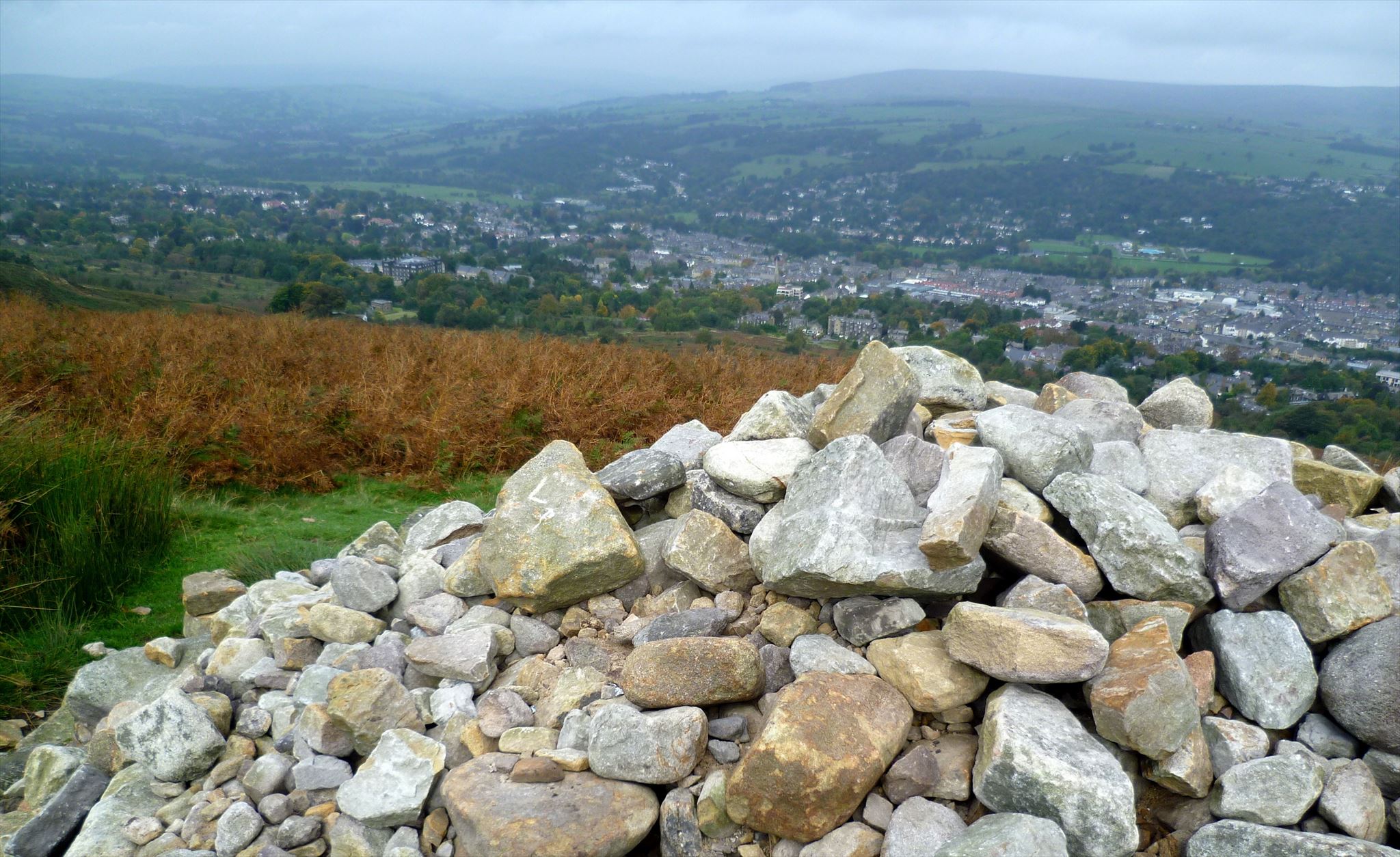 *The most noteworthy cairns on Rombald's Moor are scheduled ancient (Bronze Age) monuments - The Great Skirtful of Stones @ N 53 53.843 W 1 47.215 (see here, here and here) and The Little Skirtful of Stones @ N 53 54.162 W 1 47.453 (see here and here) to the south-east on Burley Moor.