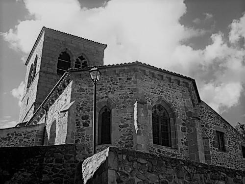 L'église dépendait, jusqu'en 1789, de l'abbé d'Aurillac. Un prieuré attenant existait. Edifice d'origine romane, agrandi aux époques gothiques et modernes, présentant un plan orienté avec choeur à chevet polygonal. La nef romane conserve, du côté nord, un mur qui pourrait remonter à la fin du 11e ou au début du 12e siècle. Elle a été renforcée à l'époque gothique par des piliers et doubleaux intermédiaires. Une colonne engagée surmontée d'un chapiteau d'inspiration corinthienne se trouve du côté sud-est et pourrait dater du 12e siècle. Le porche devait, à l'origine, posséder deux travées dont l'une, aujourd'hui, est occupée par la chapelle des fonts baptismaux. Le clocher présente une forme traditionnelle bien préservée. Il est divisé en deux niveaux par un bandeau servant d'appui sur chaque face à des baies jumelées en arc brisé ouvrant sur le beffroi. La tourelle ronde d'escalier dépasse la nef d'un niveau et est elle-même dépassée d'un autre niveau par le clocher. Les vitraux, datés de 1877 et dus au peintre Martial Mailhot, représentent Saint-Jean-Baptiste, Saint-Saturnin, Saint-Alexis et Sainte-Agathe.