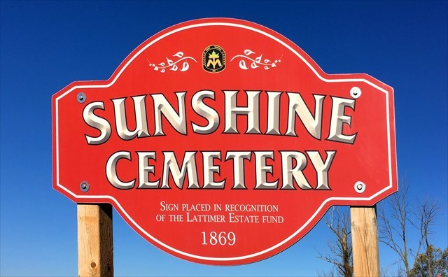 Today nothing remains of Sunshine, with the exception of the hilltop Methodist cemetery. The tombstones tell a tragic tail of Henry Baines and Margaret Clegg, both of whom drowned in a boating accident in 1886 while returning home from a church event. The accident hit the village hard and was retold for many years afterwards. The school lasted until 1964. Although the cemetery is classed as "abandoned," it continues to be well maintained.