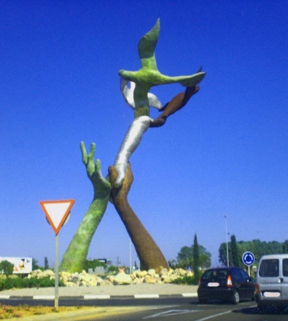 It was known as the sculpture of the hands; iron, steel and copper made up three arms and hands that held his three doves of peace. Since its inauguration, on September 28, 2010, it lived happily in its idyllic location, from the center of a roundabout its majestic silhouette welcomed those who liked to enter the city of Castellón de la Plana from its southern access. Admired by many, because it had been created to represent peace and the unity of peoples, in addition to honoring the victims of terrorism from around the world.