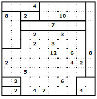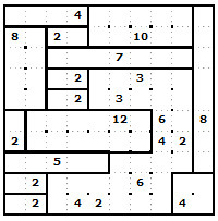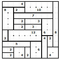 Pravidla jsou jednoduchá. Máte mřížku a vy ji musíte rozdělit na čtverce nebo obdélníky tak, aby každý čtverec/obdélník obsahoval právě jedno číslo, které určuje jeho plošný obsah, tj. počet políček v něm.