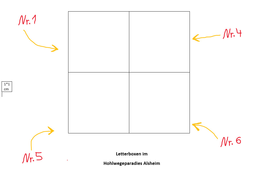 Am Bürgerhaus in Alsheim sind die entsprechenden Wege mit Schautafel und Flyer dargestellt. Die Letterboxen und Boni laufen entlang der offiziellen Wege mit farblicher Markierung. Hier gibts auch immer wieder informative Schautafeln rund um Rheinhessen.