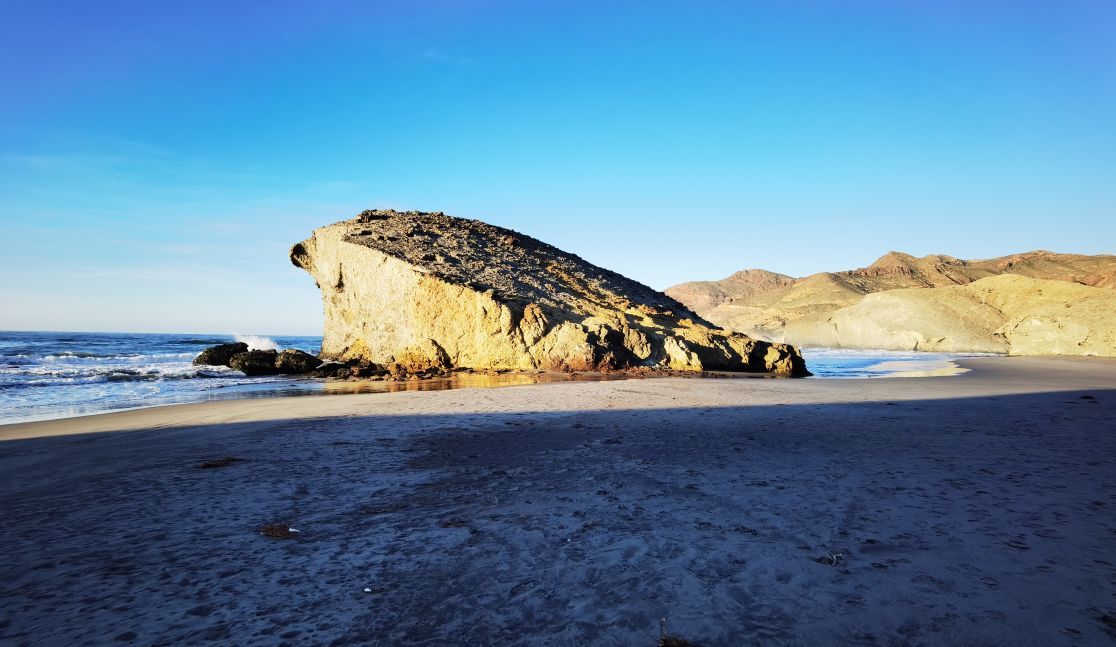 The Mónsul cove beach, commonly known as Mónsul beach or simply Mónsul, is a beach in the province of Almería that is located in the municipality of Níjar, about 4 km from the center of the town of San José. one of the best known and most appreciated on the Almería coast. It is characteristic for its Peineta (rocky cliff in the shape of a wave crest) of volcanic origin created millions of years ago and its dune.