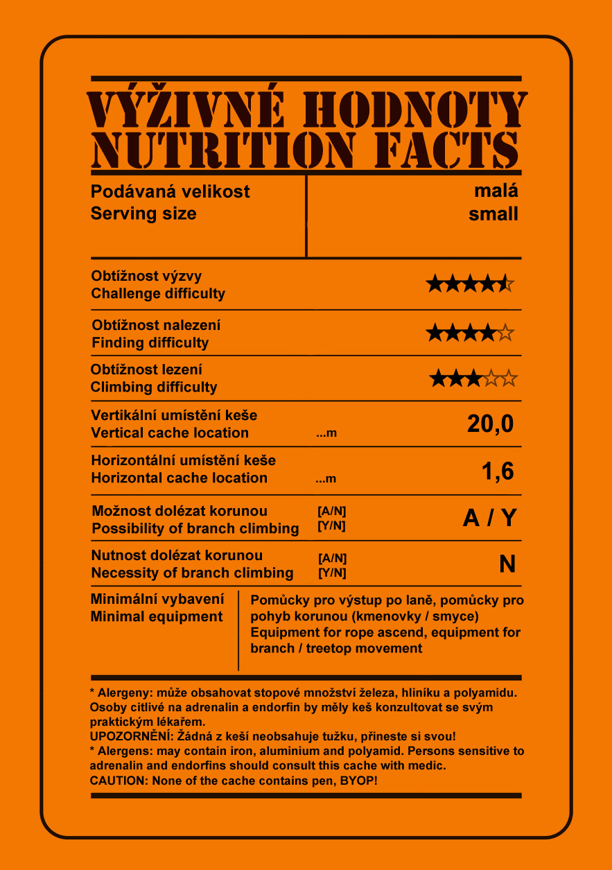 Při lezení pro kešku dodržujte všechna BEZPEČNOSTNÍ PRAVIDLA !!!!! Osvěžit si je v paměti nebo stáhnout a prostudovat si je můžete ZDE nebo ZDE.