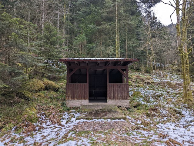 La cabane de la Flohhütte, petit abri du Club Vosgien, qui se situe sur le tracé du GR531.