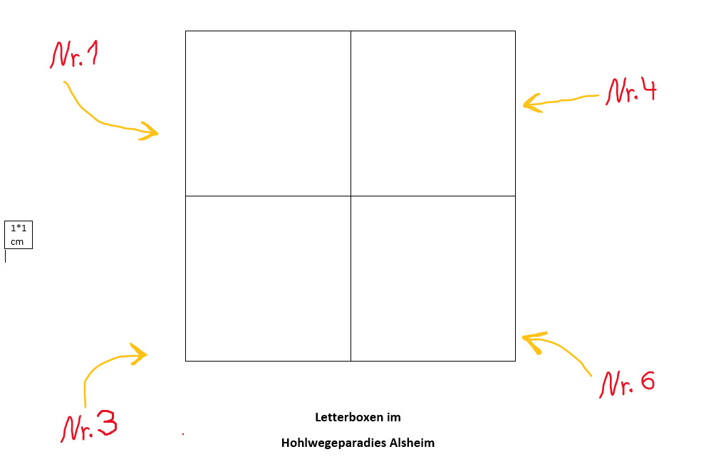 Am Bürgerhaus in Alsheim sind die entsprechenden Wege mit Schautafel und Flyer dargestellt. Die Letterboxen und Boni laufen entlang der offiziellen Wege mit farblicher Markierung. Hier gibts auch immer wieder informative Schautafeln rund um Rheinhessen.