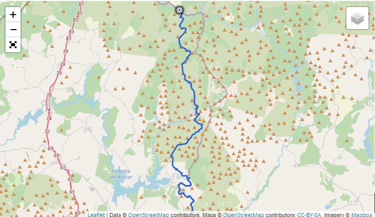 En Madrid, la carretera se cruza con el sendero, que invita al caminante a subir por la Loma Mediana, entre los valles de los ríos Jarama y Ermito, contemplando el único bosque madrileño de hayas. En tres horas, se puede alcanzar la divisoria de aguas de la sierra y asomarse a la llanura segoviana.