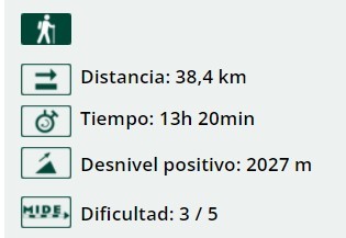 Los datos técnicos de esta ruta completa junto con su perfil de altitud se muestran a continuación:
