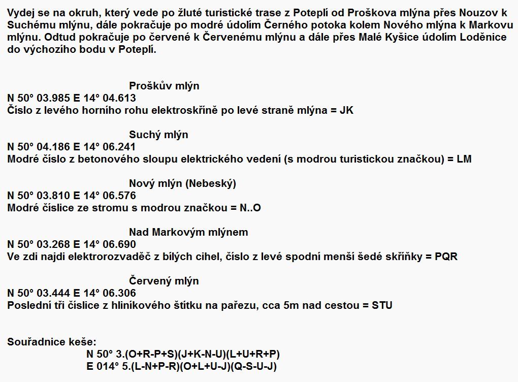 Vítejte na keši Přes pět mlýnů. Čeká vás procházka po okolí Nouzova a Malých Kyšic.