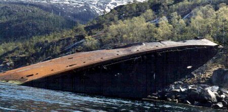 Georg Thiele hid behind the moraine ridge where the Rombak bridge now lies, but was again hit. This time by 119 mm projectile cannons. But also managed to hit one destroyer, Eskimo, with their last torpedo.
