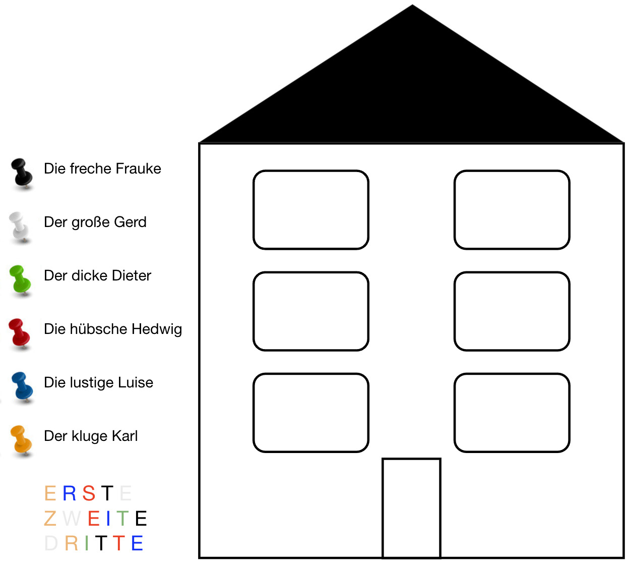 Die hübsche Hedwig wohnt rechts von der lustigen Luise.
