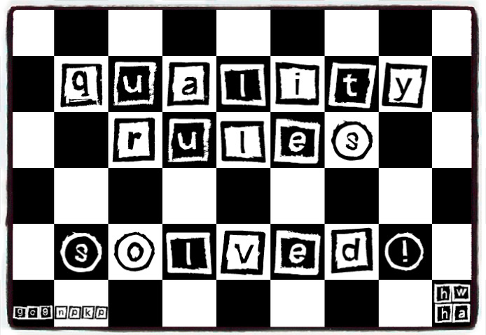 ... oder wofür stand die Abkürzung QR nochmal? "Quälende Rätselei" wäre auch noch eine Option. Oder vielleicht doch "Quarantäne-Regeln"? Na da gefällt mir "Quality Rules" dann doch besser! 😉 Die Idee zu diesem Rätsel kam mir vor ein paar Wochen, als ich an einem Rätsel von Alaudic verzweifelt bin. Einen meiner Rätselansätze fand ich so gut, dass ich ihn nun hier selber verarbeite.