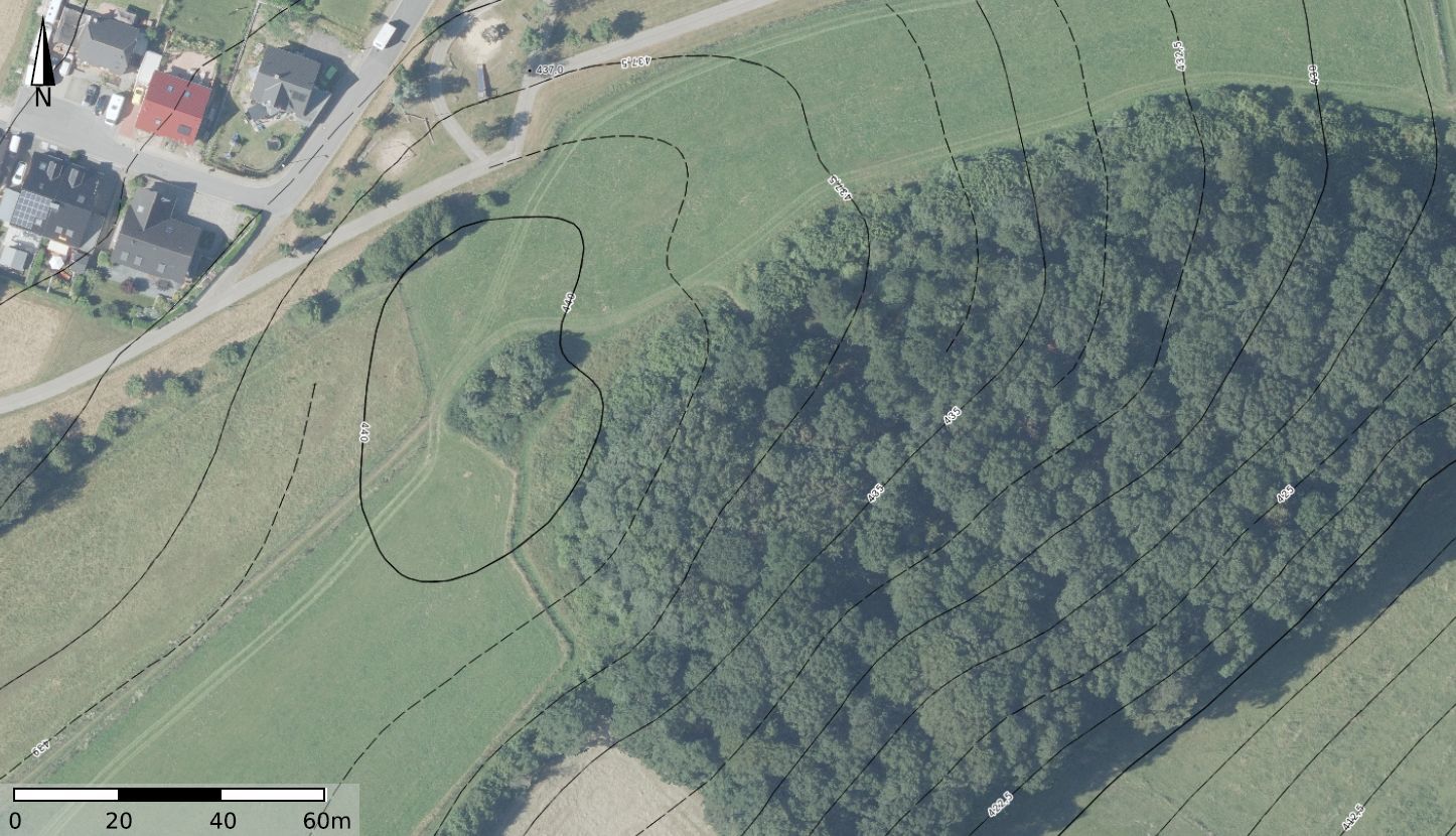 Das kleine Wäldchen des Nordostgipfels kann auf einem kurzen Weg von Norden (Wegpunkte N1 und N2: knapp 100 m) oder einen längeren Weg von Westen (Wegpunkte W1 und W2: ca. 500 m) entlang der jeweiligen Feldraine von öffentlichen Straßen aus erreicht werden. Dieses Waldstück wird durch einen Rundweg erschlossen. Das Betreten ist auf eigene Gefahr gestattet (§ 2 Landesforstgesetz NRW und § 75 Landesnaturschutzgesetz NRW). Zäune müssen dabei selbstverständlich nicht überwunden werden und natürlich sollten wir uns so naturschonend wie möglich verhalten. Wenn man an den Parkkoordinaten startet, kann man eine Runde um beide Gipfel von knapp 2 km gegen den Uhrzeigersinn gehen (Parkplatz - Stage 2 - W1 - W2 - Final - N2 - N1 - Parkplatz). Hin und zurück über N1 und N2 geht natürlich auch.
