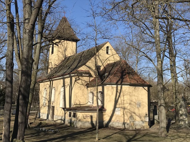 The so-called Peterskirchlein is located at Dr.-Martin-Luther-Straße 24 in the green areas near the north of Regensburg's main train station. The small church built in 1806 as the Cemetery church of St. Peter of the Lower Town Catholic cemetery is now a Bulgarian Orthodox Church