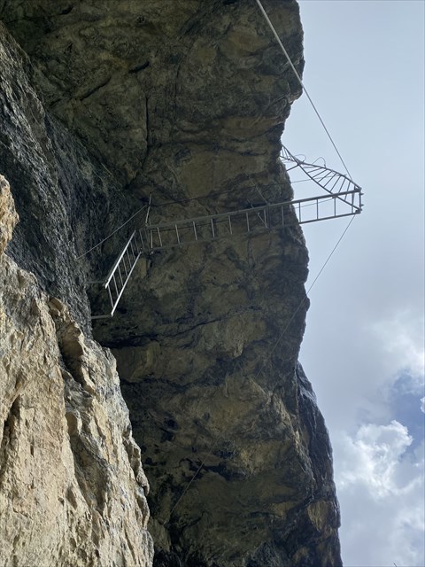 DE Während des Klettersteigs kommt man an dieser einzigartigen Drehleiter vorbei.