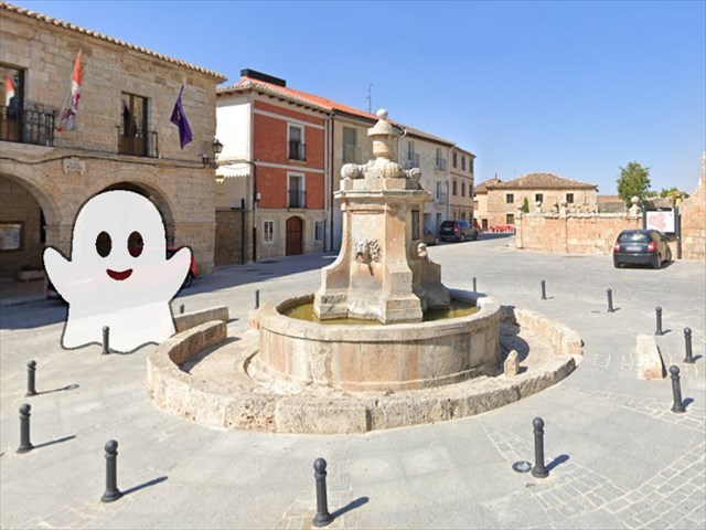 Partiremos de esta bonita plaza con edificios porticados entre los que destaca el ayuntamiento y que se encuentra muy cerca de la colegiata. En el centro de la plaza podemos ver la Fuente de los Cuatro Caños del siglo XVIII. Ojalá hubiera encontrado una fuente de agua tan fresquita con la que saciar mi sed antes de ser un fantasma y cuando aún podía beberla... Elegid uno de los cuatro caños, cada uno tiene una cabeza diferente: un hombre, una mujer, un león y una hidra. ¡CARACOLES! ¿Y qué es eso que ven mis ojos? ¡En la parte superior de la fuente hay cuatro caracoles!