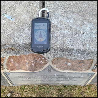 1. To validate that you are indeed standing south of Detroit, set your GPSr to the reference point for Hart Plaza in Detroit (N 42° 19.627 W 083° 02.642). Place your GPSr at the apex of the triangle (see inset photo as example) and note the bearing (N,S,E,W) and distance to the reference point. Provide these readings in your message.