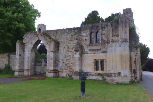 This was the gatehouse to the Benedictine Abbey in Ramsey. In 1537 the abbey was dissolved and the Crown granted its buildings and site to Richard Williams, who had part of the gatehouse (believed to be the outer gatehouse) dismantled, moved to Hinchingbrooke House and rebuilt as its gatehouse there. The remainder of the gatehouse survives as a Grade 1 listed ruin here on Abbey Green. An ornate carved exterior with a beautiful oriel window is all that survives of the gatehouse. In 1952 Ailwyn Fellowes, 3rd Baron de Ramsey, gave the gatehouse to the National Trust in memory of his sister Diana Broughton.