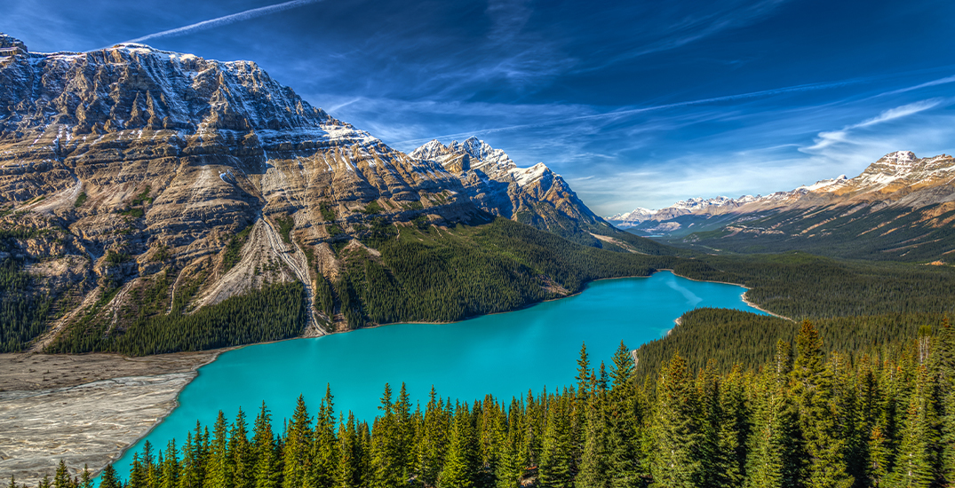 Welcome to Bow Summit! At an elevation of 2,070 metres (6,790 feet) above sea level, it is the highest driveable pass in the national parks of the Canadian Rockies! This virtual cache will take you to a fantastic viewpoint overlooking Peyto Lake, one of the most picturesque glacier-fed lakes in Banff National Park. Owing to the high elevation, this cache location makes it the perfect location to study an interesting phenomenon known as treeline. To begin your adventure, park at the Bow Summit parking lot; there are public washrooms and garbage cans located there for your use.