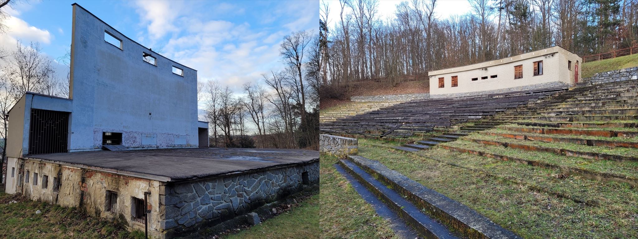 V zámeckém areálu se nachází momentálně zchátralé letní kino, které však určitě taktéž stojí za návštěvu. Zde se vyfoťte s promítací zdí v pozadí.