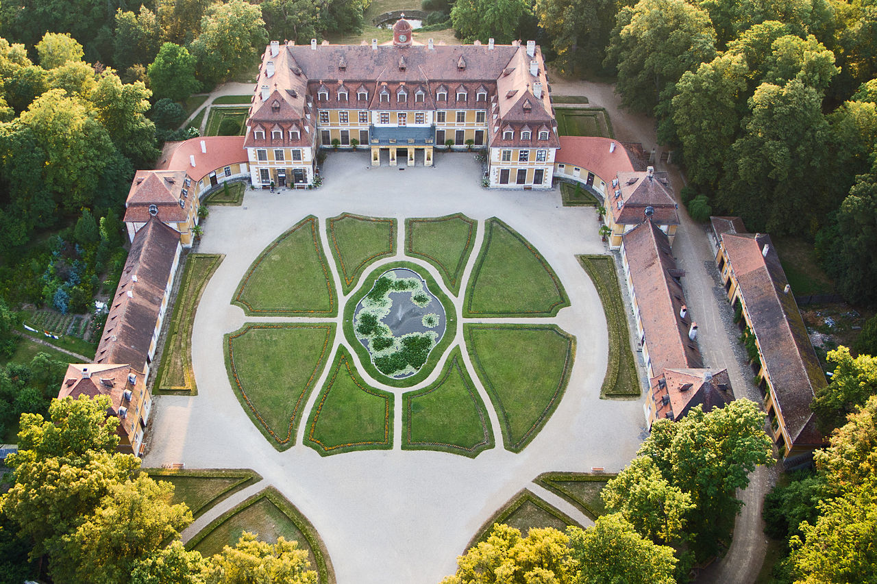 Prvním úkolem bude vyfotit se na nádvoří před kašnou se zámkem samotným v pozadí.