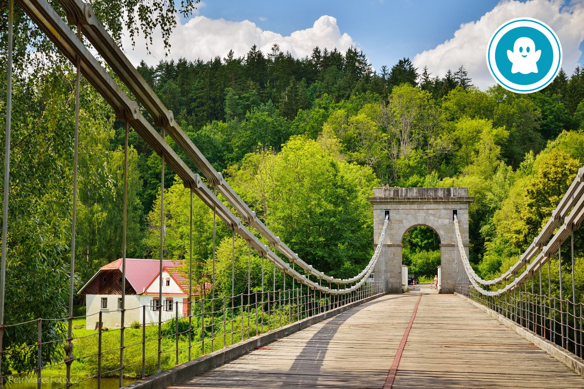 The Stádlec Suspension Bridge (Czech: Stádlecký most) over the Lužnice river is located near the market town of Stádlec, Czech Republic. It is the last surviving suspension bridge built in empire style in the Czech Republic. Originally, between 1848–1960, it spanned the Vltava river near Podolsko, South Bohemian region. It was dismantled between 1960–1975 and moved to its present location near Stádlec.