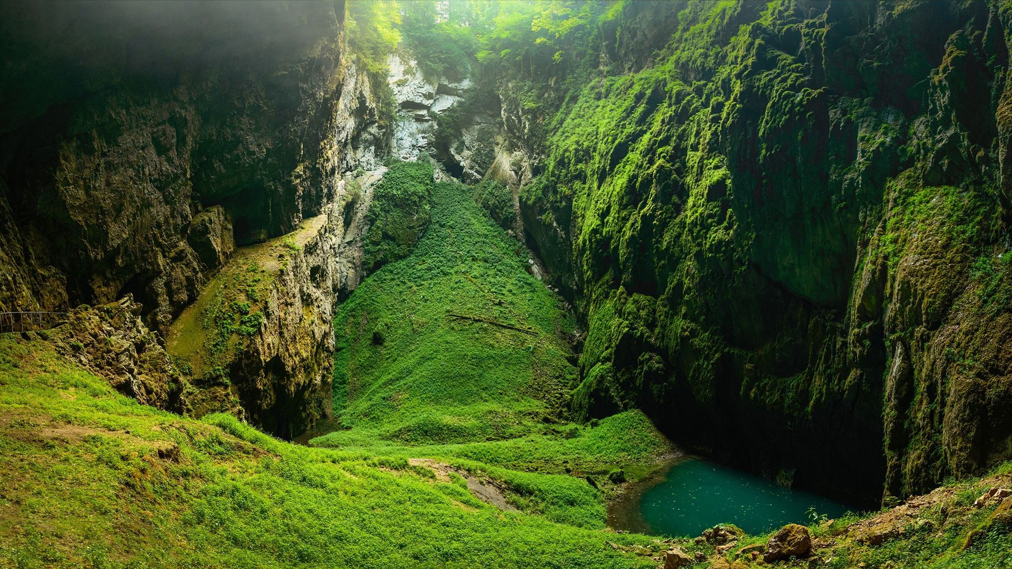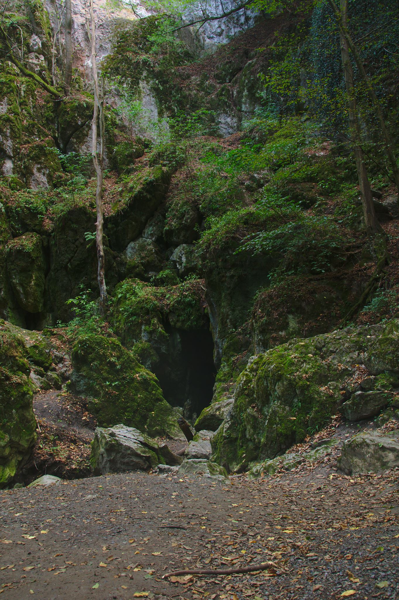 Na tomto místě se vyfoťte s jeskyní a skalní stěnou v pozadí.