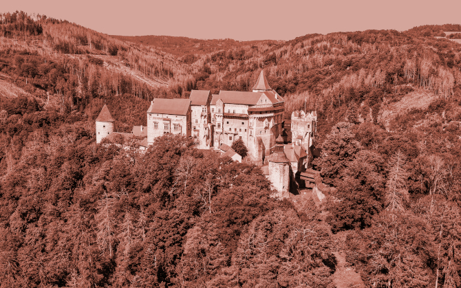 foto Pernštejna zpod brány: web Země Světa