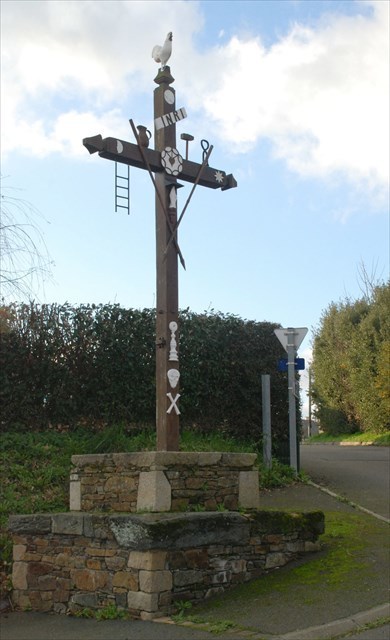 Parmi les nombreuses croix de chemin que vous pourrez découvrir dans la région, celle-ci est certainement la plus originale : La Croix aux Outils de Kergiquel.