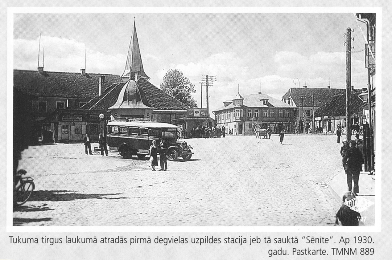 Apciemo senāko saglabājušos degvielas uzpildes staciju Latvijā! Tā atrodas Tukuma pašā centrā – Brīvības laukumā (toreiz Tirgus laukums).
